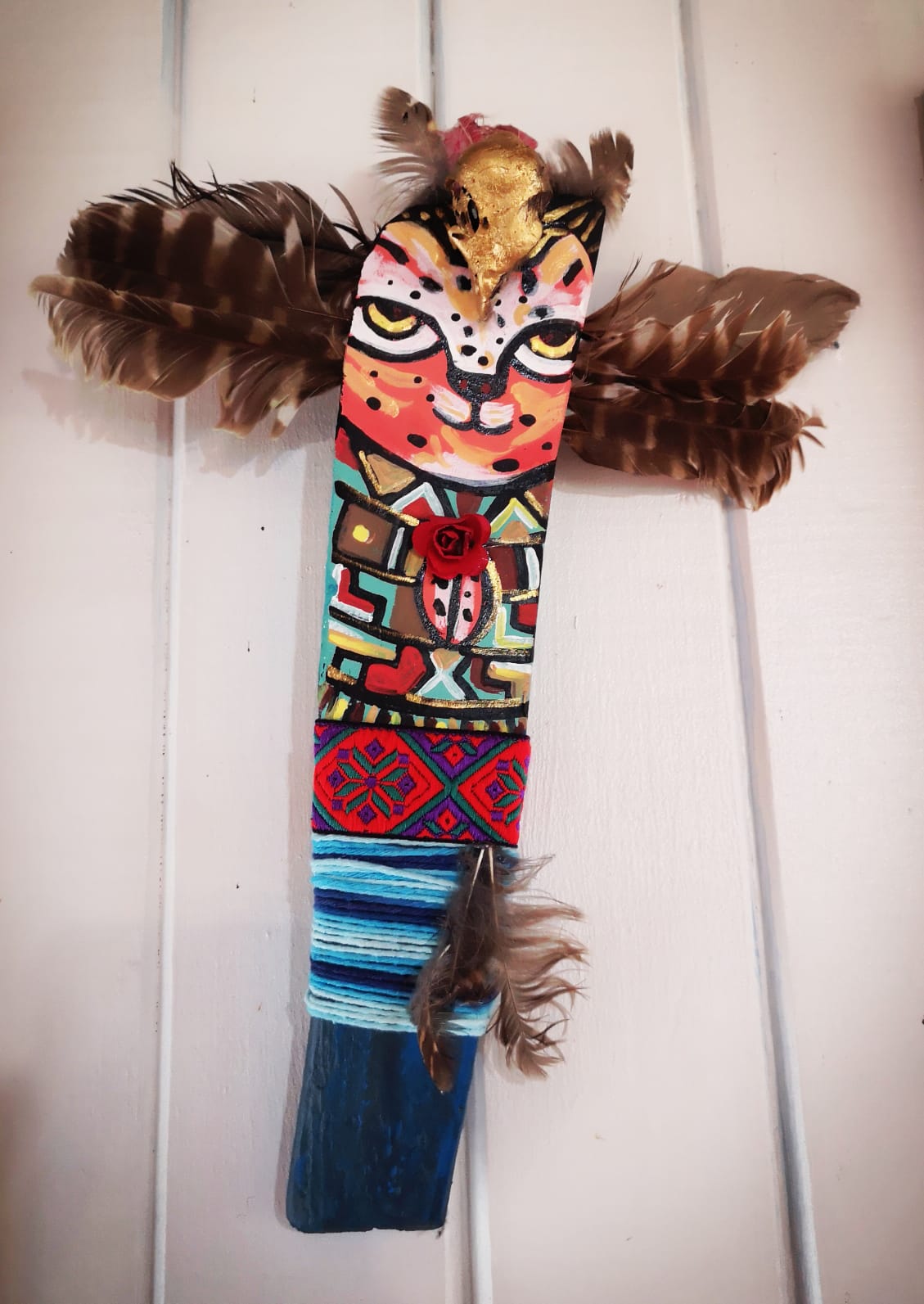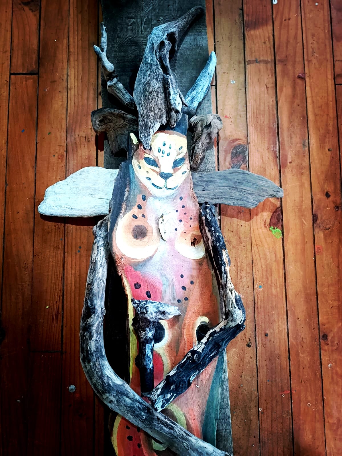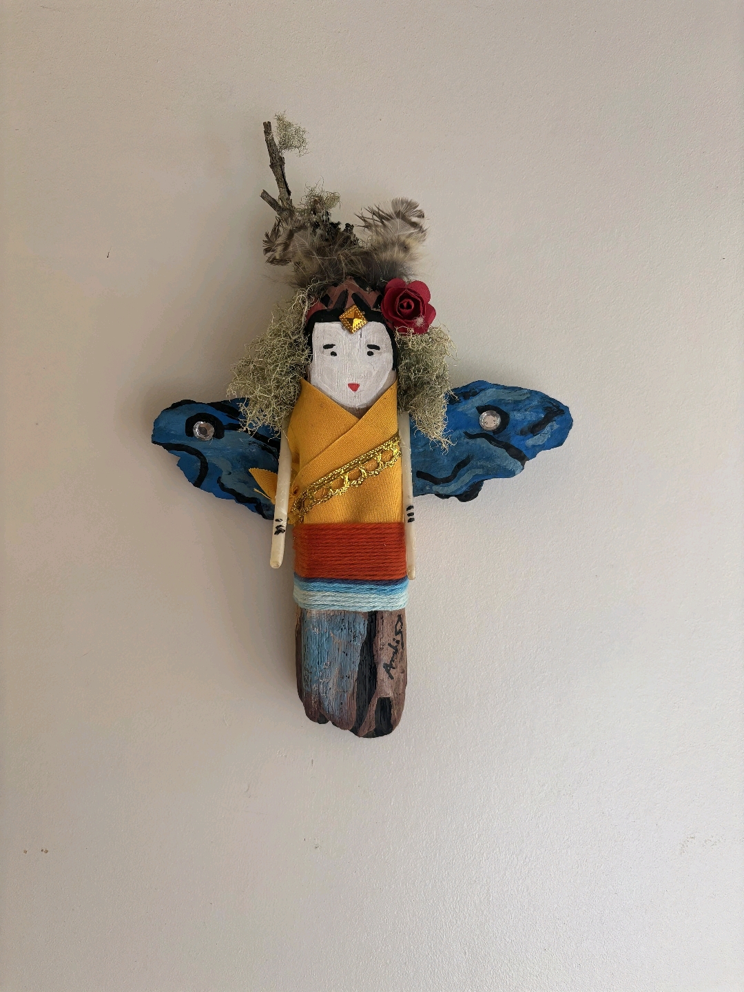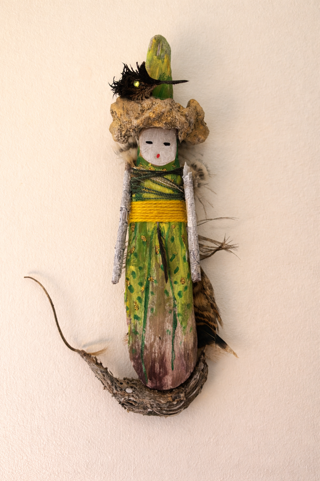 La Colección Amrita Zen es un cuerpo de trabajo nacido de un encuentro directo con el paisaje de Chile. Madera, pluma, piedra y otros materiales recolectados de las montañas del Lago Rupanco forman la base de cada pieza, haciendo que la colección sea inseparable del lugar que la formó. Cada obra lleva la textura, el peso y la quietud de ese terreno.